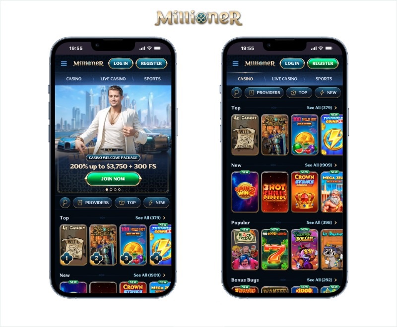 Launched in 2025 and operated by NovaForge, Millioner is another one of our favourite online casinos in Canada. It offers over 9,000 games from more than 80 software providers, including Yggdrasil, Red Tiger, and Amatic. We were very impressed with the huge collection of new games. Specifically, we found over 1,860 of them, such as Roman Coins, Gigantoonz, and Cash Transporter.